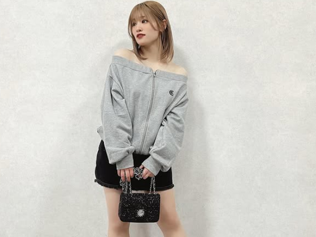 裏毛素材のスウェットオフショルトップス🩶
