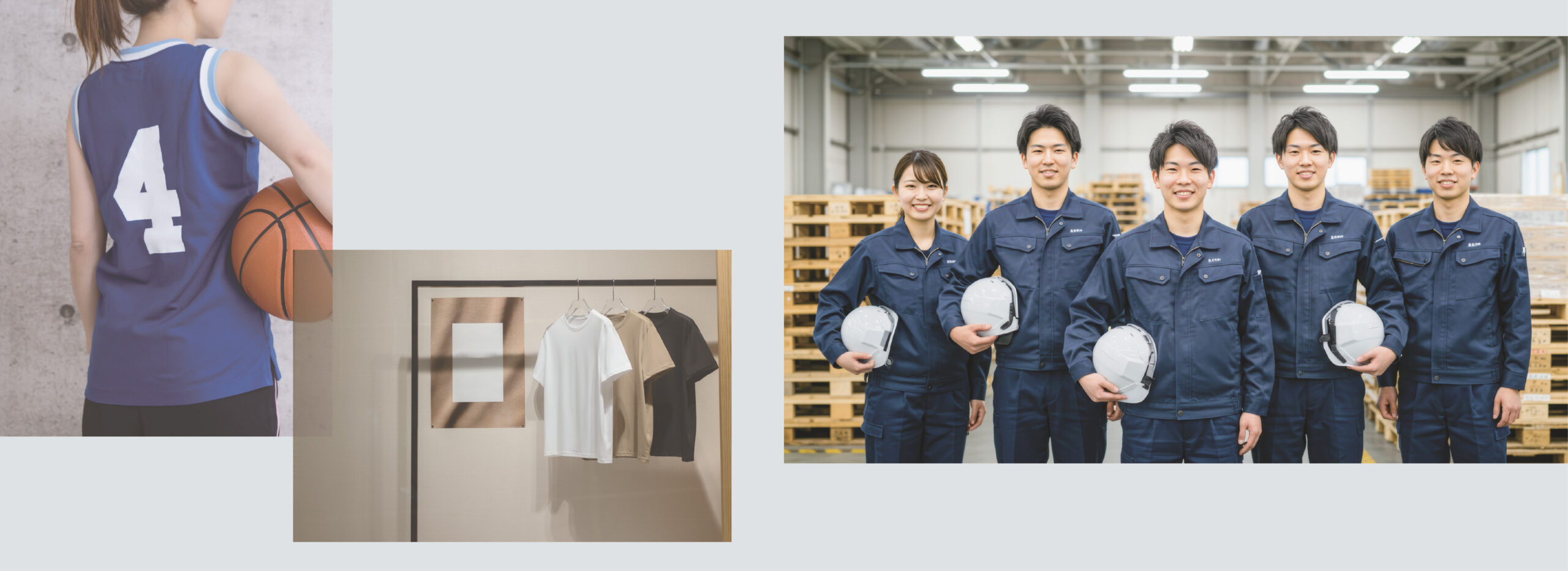 当社では、制服・事務服・作業服をはじめ、飲食店向けユニフォーム、学生服、白衣、安全用品、チームウェアなど、幅広いユニフォームを取り扱っております。